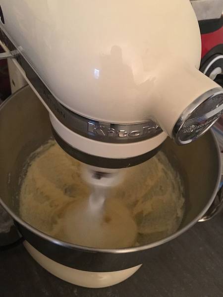 奶油和細糖,塩+香草放在一起打到鬆軟 攪拌器約打5分鐘